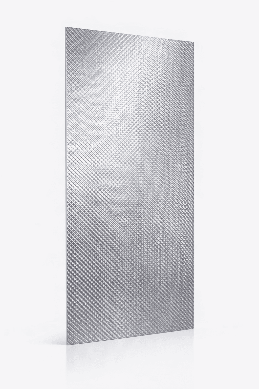Superficie metálica de carácter geométrico con patrón lineal y acabado satinado que genera un efecto visual rítmico y contemporáneo. Su textura direccional aporta orden, profundidad y un juego de luz sutil, ideal para proyectos que buscan precisión estética y una presencia arquitectónica marcada.